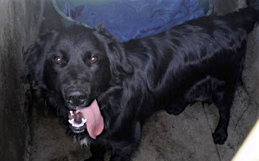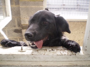 Dewey... is a lovely, large, affectionate black retriever x, 7 to 9 months old, surrendered to the pound because his family, who have four young children, didn’t have time for him. In fact, poor Dewey is just desperate for someone to give him some proper attention and boundaries. Oh, and actually take him for a walk sometimes - or perhaps play with him. He doesn’t seem to know what toys are for and his face was a picture when he saw what was clearly his first cow this morning.