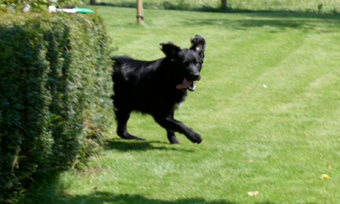 Dewey is a lively, strong, characterful, huggy-bear of a dog, with a very cute quiff on the top of his head. He is already quite big and is going to get bigger (big feet....!). We think he is a lab/collie x, but haven’t completely ruled out some Newfoundland in there! He has a really beautiful, full coat that gleams in the sun.