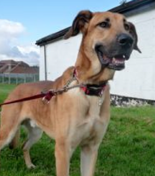 DEXTER.. is a gorgeous great dane/GSD x , we think about two years old, who has a great many strengths. He is very soft, very affectionate and bonds easily. He is also very obedient, house-trained, chilled out indoors, very good on a lead and terrific with children and cats.
