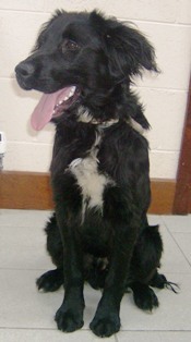DILLON... is a gorgeous young black retriever x (almost certainly lab/collie) who manages to look different in each of these pix. So is he the puppyish cheeky-chappy in the top pic? The less confident boy in the middle pic? Or the older, positively soulful young man in the third pic? All will hopefully be revealed...