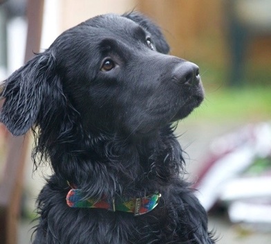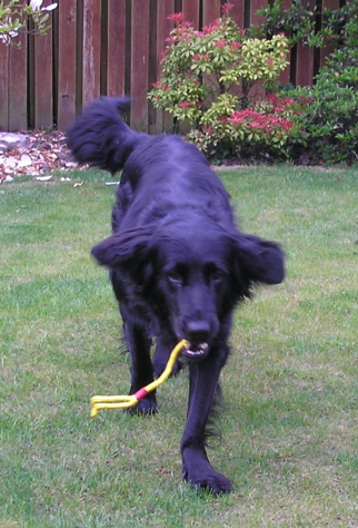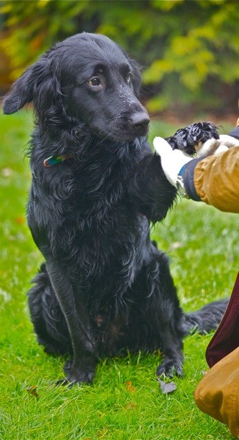 His strengths: he is pretty good with cats, he settles beautifully in the house, he gets on very well with most dogs, he is not in the least hyper and he has good recall.