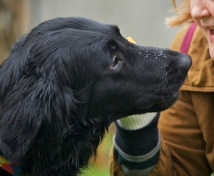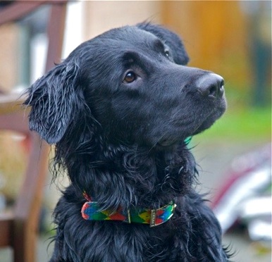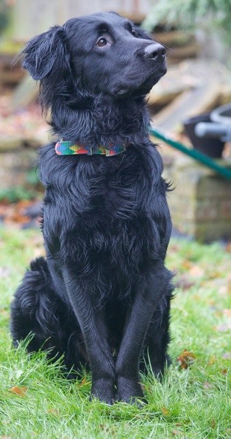 He was never reclaimed and spent 5 weeks in a council pound. Now, normally, a dog this good-looking would have been rehomed very quickly (and not least because they advertised him as a flatcoat), but Dylan (then called Moss) was terrified and presented very badly whenever anyone approached his kennel - retreated to the back and barked/growled. He seemed particularly scared of men.