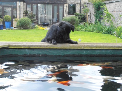 Fosse is in a foster home with a male lab and a female lab x with whom he gets on really well. He’s been good with every dog he’s met - although did respond when attacked recently by a Golden Retriever recently (not unreasonably, we thought...). He is currently sharing with a cat, but he is too interested to allow unsupervised access. When he first arrived, Fosse spent many hours watching the cat through the french windows (Cat TV as it became known) and he still likes to watch the fish in pescatorium (it’s rather too grand to be called a pond!) at his foster home.
