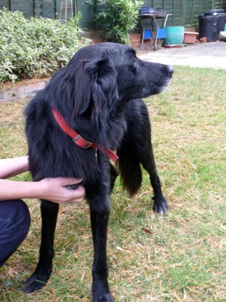 Leo arrived with Lola last week and is such a sweetie! You can definitely see collie ancestry in how he looks (he even has rear dew claws), but he is very retrievery in nature - a soft, cuddly boy who loves nothing more than to snuggle up to you on the sofa and snooze. He’s a lovely-looking boy, obedient, submissive to Lola and quieter than she is. Don’t be put off by the fact that he’s a bit scraggy looking at the moment (it’s been a stressful time) or that he has grey on his muzzle - it’s common in collie crosses and doesn’t necessarily indicate great age - although we do think that Leo is a bit older than the two years old we were told. Like Lola, he shows signs of a previously hard life - when foster mum Robin took two stick-shaped treats out of a bag with a “da-dah!”, they both legged it. But he is soon persuaded to come back to you for a cuddle.