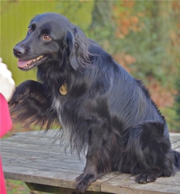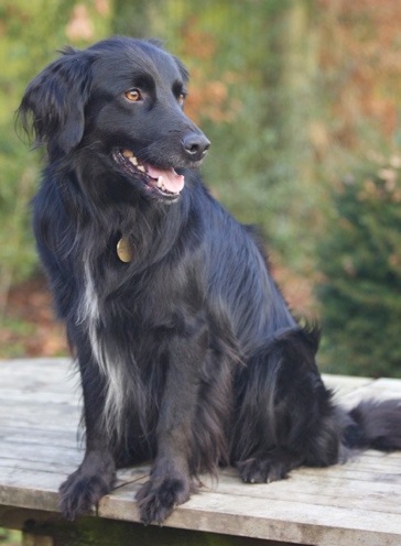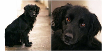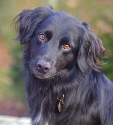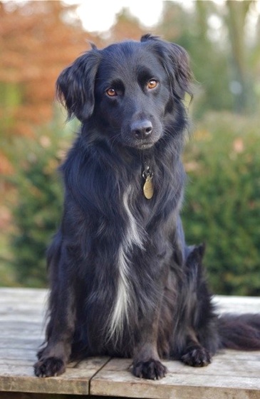 We reckon he is 18 months to 2 yrs old and he is a very soft and cuddly lad (with a beautifully soft and silky coat) who loves human company and will follow you around all day given half the chance... He is great with other dogs and loves to play, although his social skills are a little lacking so my gang are slightly turning their nose up at him at the moment - except for our Tara who has used her feminine wiles once or twice to tempt him into the chase-round-veg-patch game.