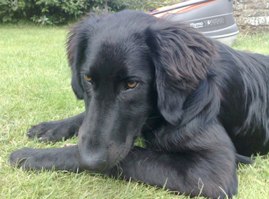OZ... first arrived with us in June, a gorgeous 10-mth-old retriever x who had been surrendered to Dundalk Pound. He was then called Tramp and his story is here.