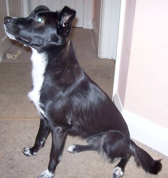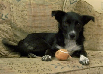 A small collie x (probably with terrier) and now about a year old, she has undoubtedly been abused and when her owner turned up to collect her from the pound, she was so petrified of him the warden refused to let him take her. But Sadie has come on leaps and bounds since then. She has blossomed into a playful, loving, bright youngster who gets on well with other dogs and loves her food!