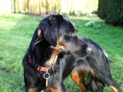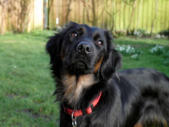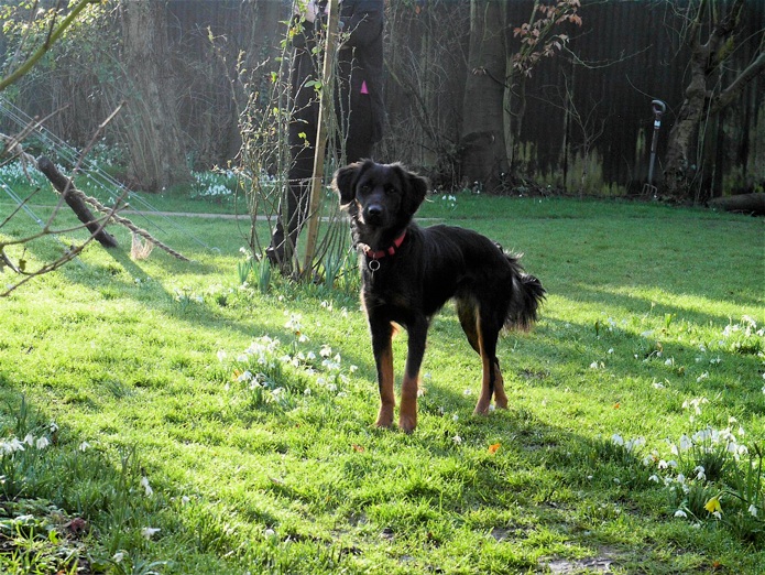 Tickle (was Bourneville) is a small, pretty, spirited girl, just 9 months old when she arrived from Ireland in February. Now the sharp-eyed among you may spot that she is not entirely black... or, indeed, a retriever and for that we can blame Mary, who spotted her picture on an Irish web site and decided we couldn’t refuse!